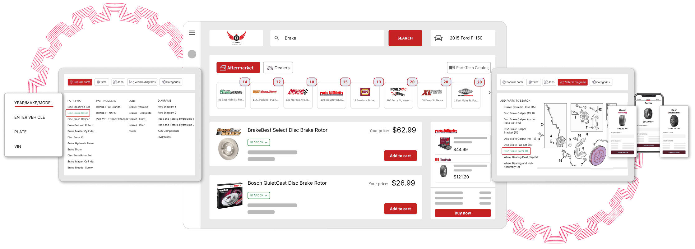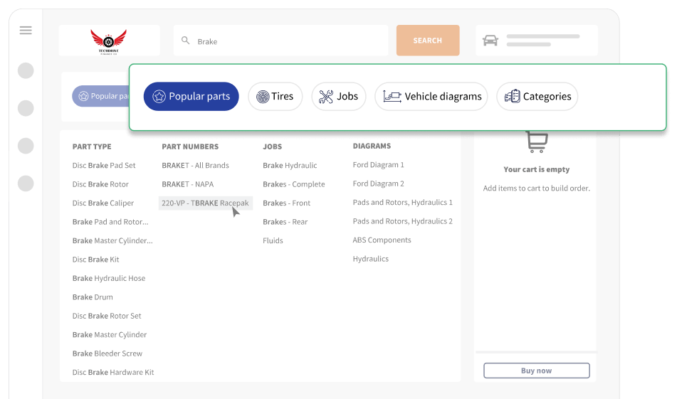 Quickly search for parts and tires